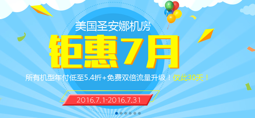 天下数据美国圣安娜七月大型优惠活动!2016-7-1
