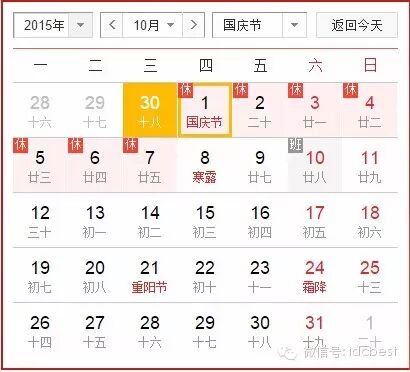 10月1日至10月8日放假调休,共8天。9 月 30 日(周六)上班。
